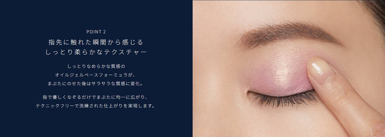 指先に触れた瞬間から感じるしっとり柔らかなテクスチャーで、まぶたになめらかにフィットします。