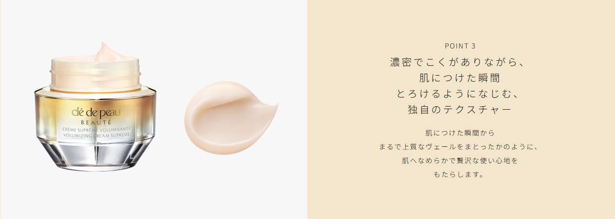 濃密でこくがありながら、肌につけた瞬間とろけるようになじむ、独自のテクスチャー。